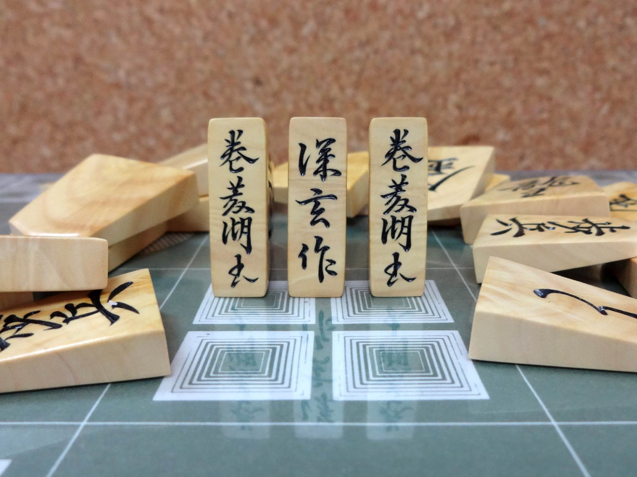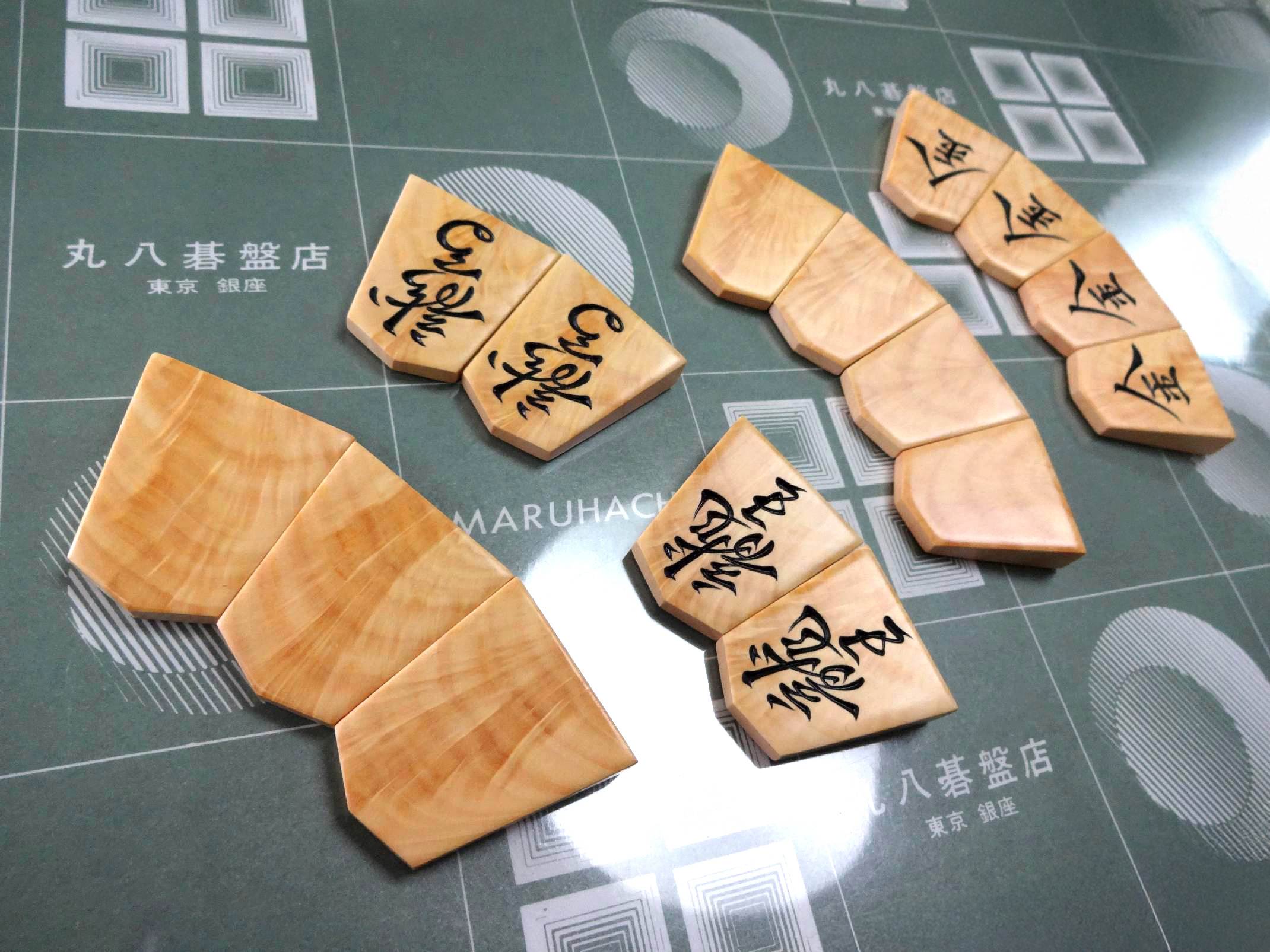 新進気鋭の若手駒師・深玄。店主が惚れ込み、ようやく一組を制作いただくことが叶いました。ご本人は蜂須賀氏から着想を得たと語りますが、その作風は単なる踏襲にとどまらず、流れるように美しい筆致と、大胆に施された面取りが調和し、ひと目で印象に残る個性を放っています。